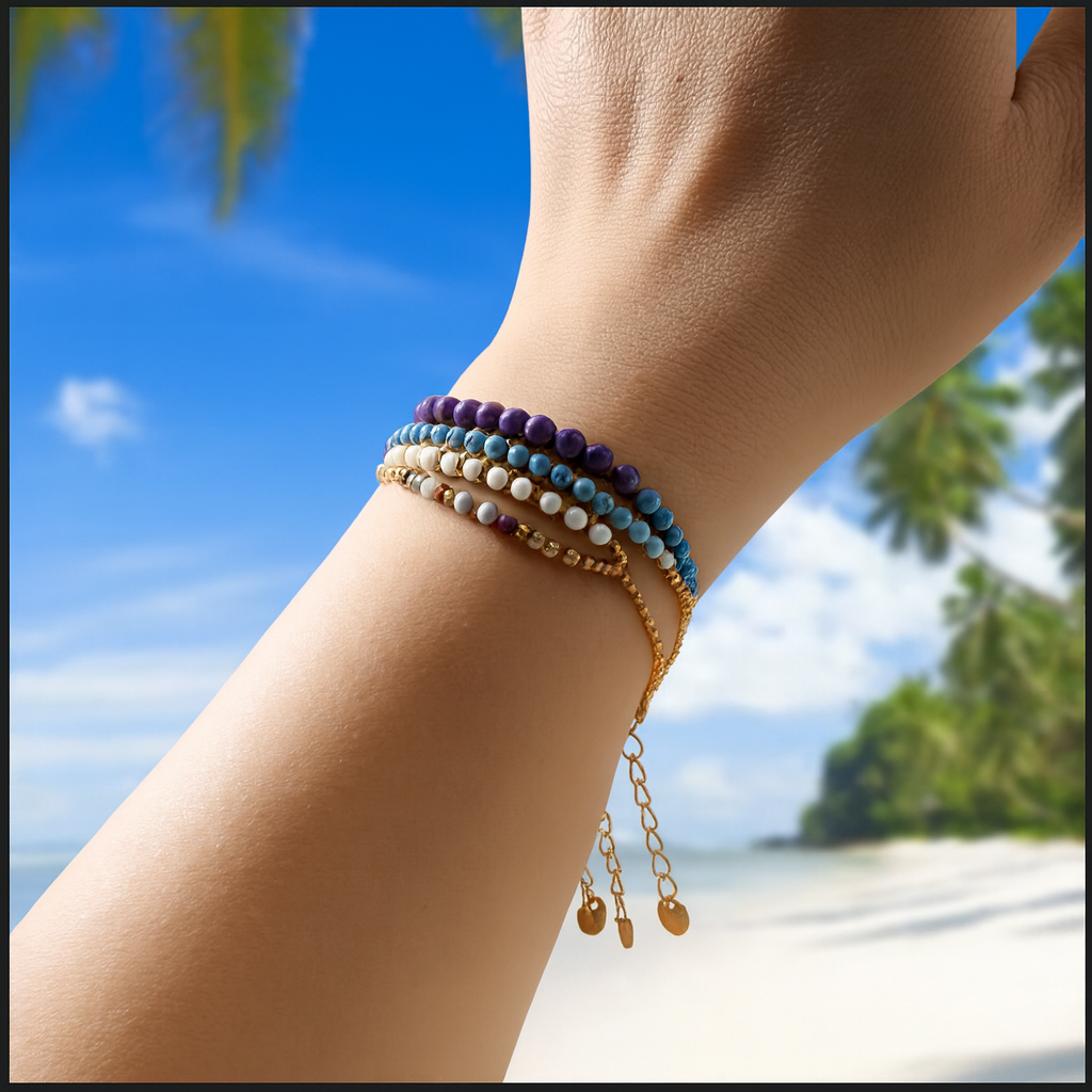 This bracelet is crafted from high-quality natural stones, including amethyst and quartz, known for their beauty and healing properties. Each facet reflects light beautifully, making it a charming piece for any occasion.